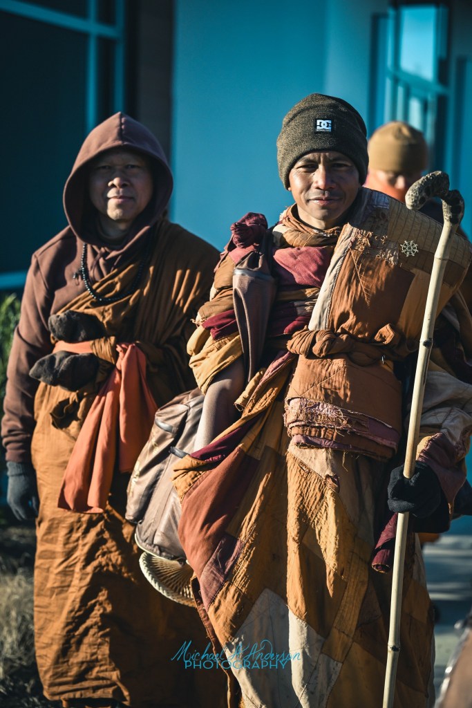 My inner monitor of  Peace has been tracking the Buddhist monks who have offered themselves with such loving intention. They seek to awaken each person’s Inner Peace, not to bring Peace, but to be Peace. They bring the meditative super strength of their monastic life, and compassion for all life. They are walking as Pilgrims to cross the South East part of our country in a Walk for Peace, 85 days so far 20+ mile per day from Texas to Washington, DC arriving sometime in February. In all, 2300 miles through a hundred small towns they are touching so much of us here in the US.